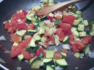 Add zucchini and tomatoes. Cover and cook on medium-low for 10 minutes.