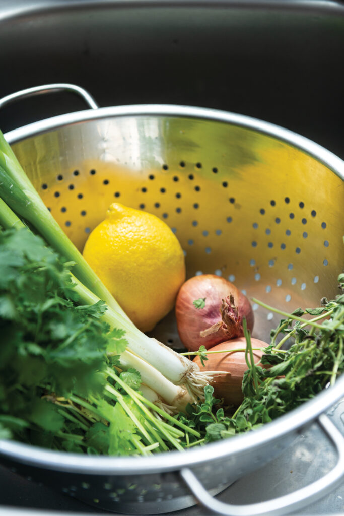 Note: Culantro is an herb that looks a little like longleaf lettuce but with sawtooth edges. It has a strong, citrusy note and is most often used in Caribbean and South American dishes. If you can’t find it, substitute flat- leaf parsley and cinnamon basil.