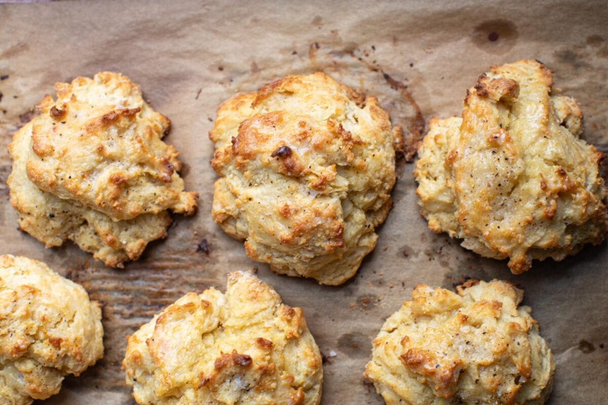 “These biscuits are moist, tender, and delightfully rich. Eaten warm out of the oven, to be used for an epic breakfast sandwich, or smothered in my mushroom gravy (see below!) these vegan drop biscuits are utterly delicious. I promise they will become your new go-to recipe.” – Timothy Pakron