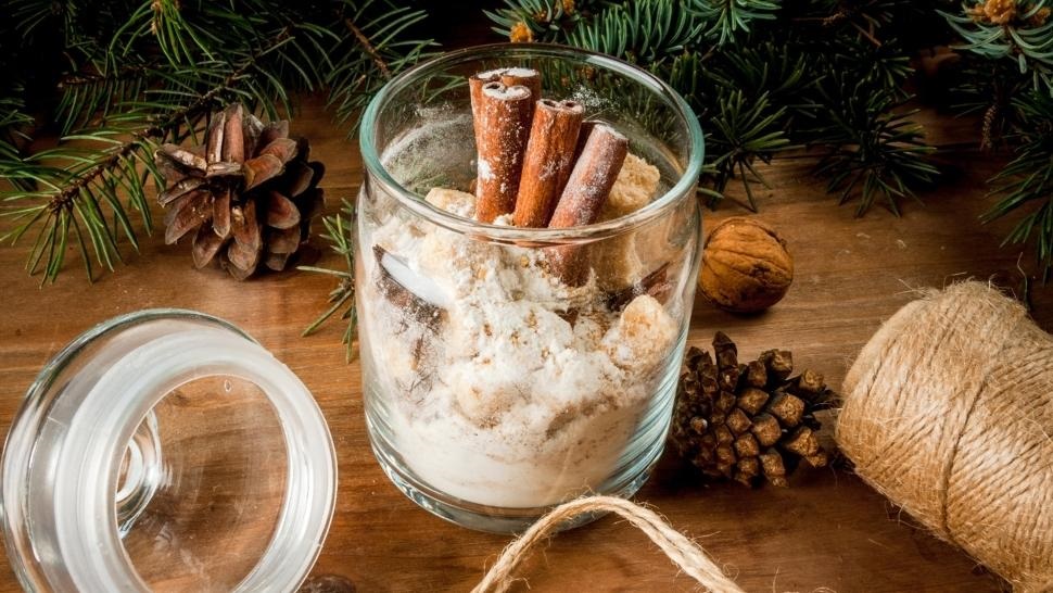 Directions: Mix dry ingredients and place in an 8 ounce glass jar. Add cinnamon sticks if desired. Attach a bow and a card with the following instructions: