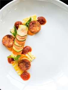 An artfully plated all-local dish from Bon Appétit at Butler University Executive Chef Jordan Hall