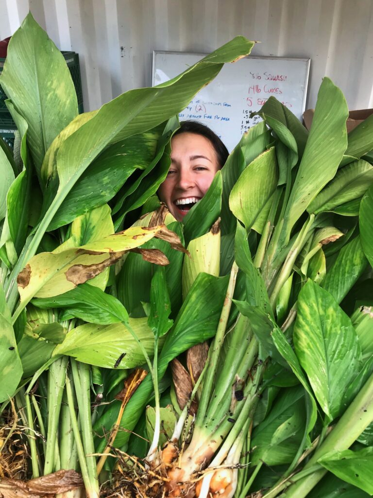Elise “in the weeds” while farming in Greenville, South Carolina