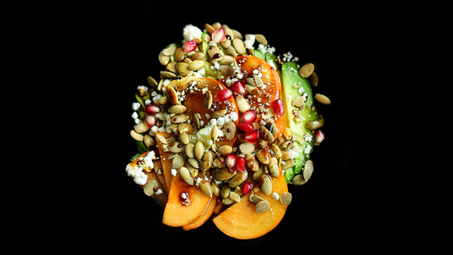 Equipped to satisfy all of your pesky cravings, this snack is colorful, full of texture, and easy to make. Can’t get your hands on a persimmon? No worries, a nice red pear can take its place.