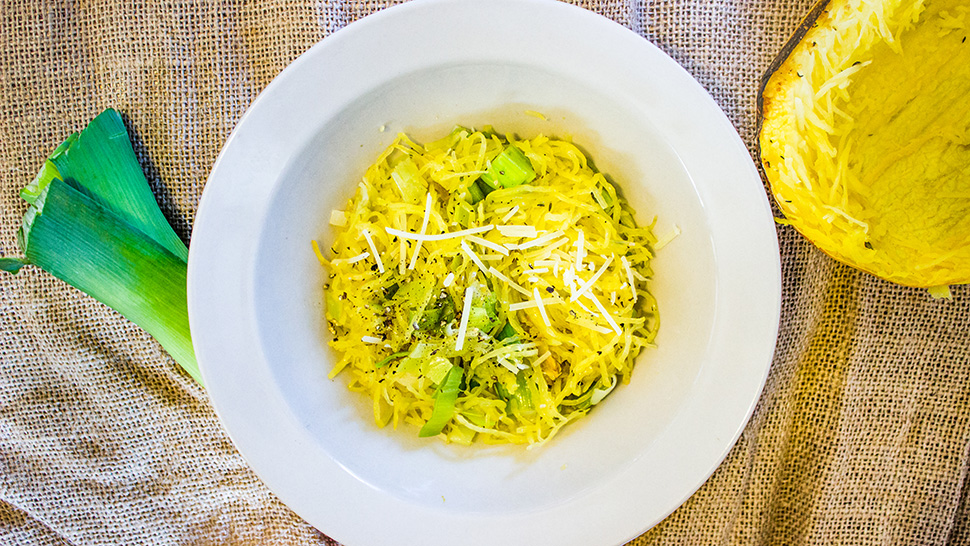 Leverage the magic of spaghetti squash this new year for a nutrient-dense approach to healthy eating! Savory strings of squash topped with vibrant melted leeks will bring a new “lower calorie, but not lower flavor” spin to your pasta nights.