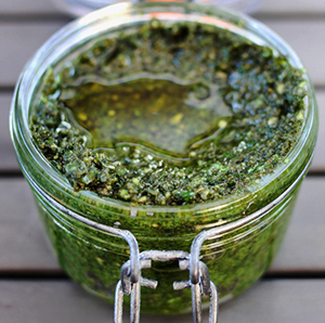 To store, pack in a small jar and top off with olive oil. Keep refrigerated, topping off with additional oil as needed to keep the pesto nice and green. Use within 7 days or freeze, covered, for up to 3 months.