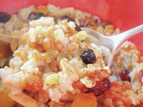 Stir in the cooked wheat berries and return to the microwave for about 90 seconds longer. Remove and let stand about a minute to thicken slightly. Transfer to a cereal bowl.