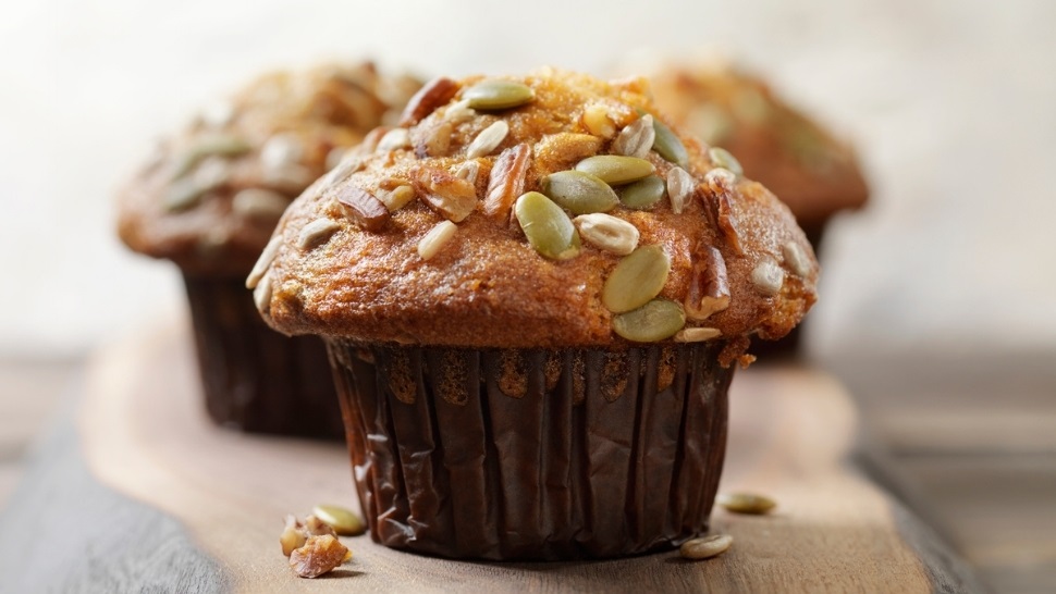 Divide evenly into lined muffin pan and top with sunflower and pepita seeds. Bake 20-25 minutes until toothpick comes out clean.