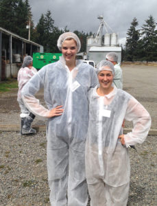 Fellows Caroline Ferguson and Maggie Kraft suited up for a tour of Stiebrs egg farm
