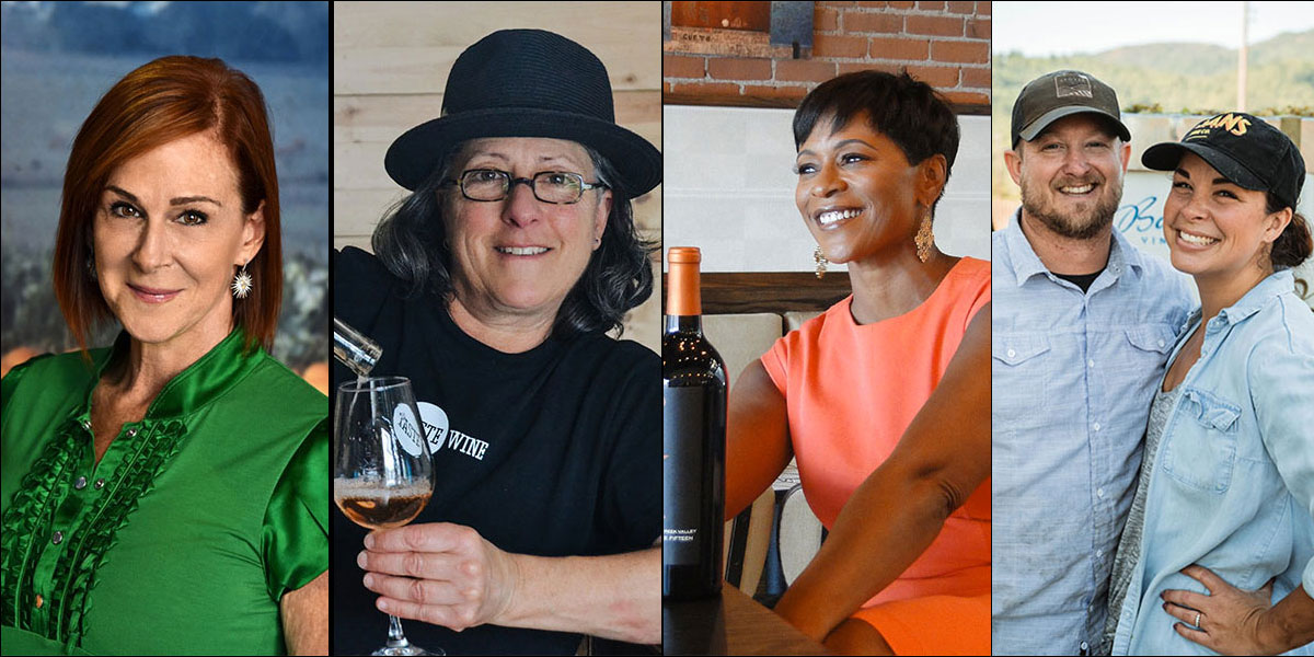 From left: Renowned wine expert Debbie Zachareas will direct the Chase Center’s wine program, while local winemakers Barbara Gratta, Paula Harrell, and Jake Stover and Gina Schober and Jake Stover have been named Taste Makers