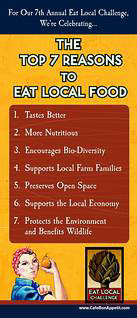 “Food miles” are just one part of the story. We don’t get side-tracked anymore by whether local food has a higher “carbon footprint” (i.e., energy expended and emissions generated in its life cycle) than supermarket food. It can be fun to debate whether Farmer Jane delivering those local tomatoes in a small truck around town uses more fuel than Corporation X’s big truck delivering to a grocery store, but there are many other variables involved. While we care very much about energy conservation and climate change — and launched aLow Carbon Diet program in 2007 to address it —we believe in eating local for many other reasons. (See above.)
